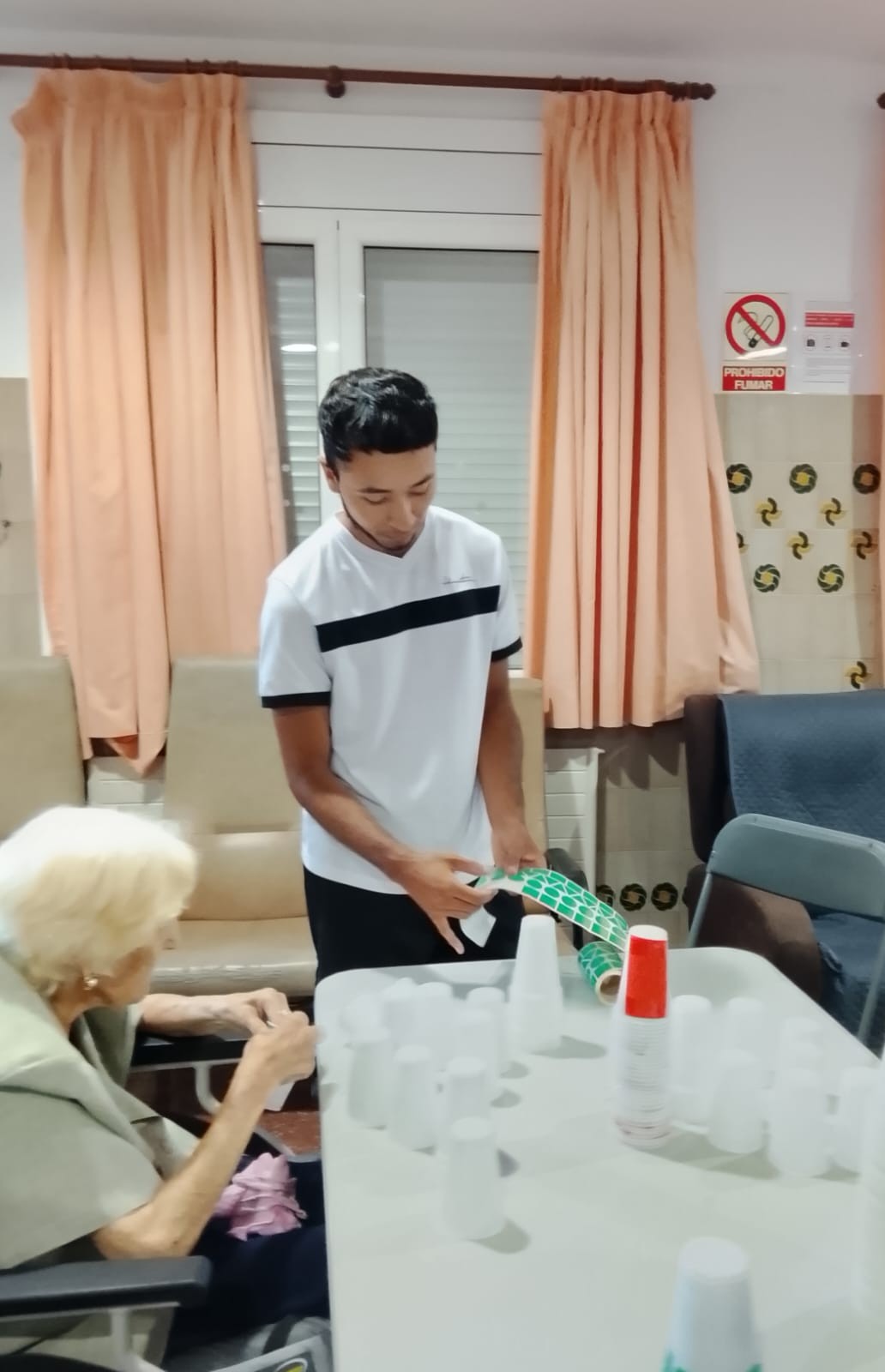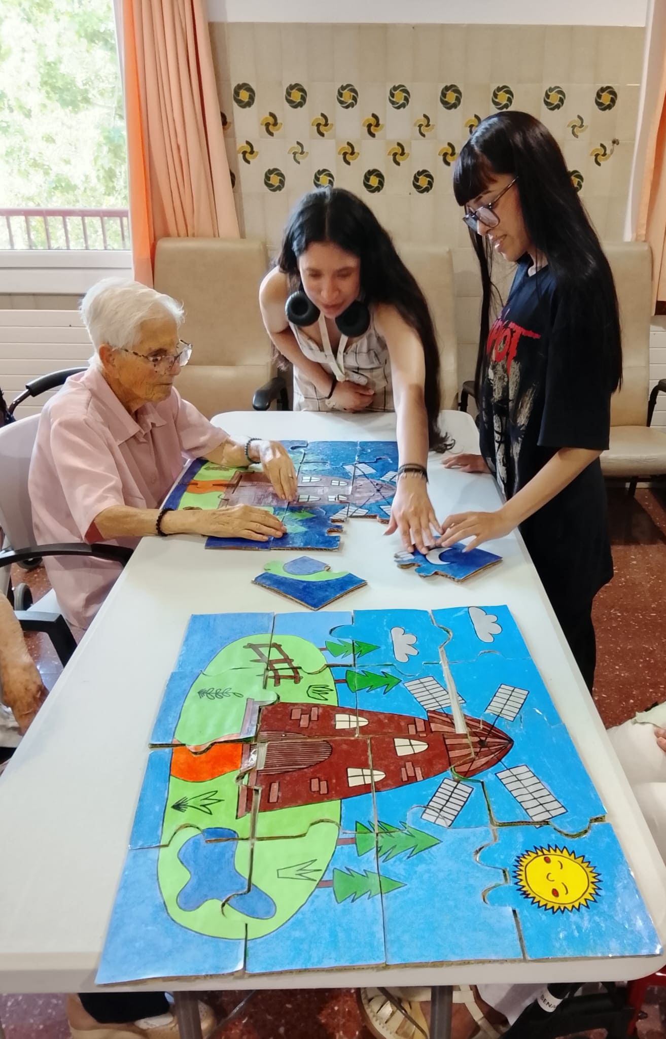 Pilar, la profesional del centro que recibió a los jóvenes, fue el nexo que facilitó que todo fuese sobre ruedas y que se produjese el encaje perfecto entre jóvenes y mayores. Su pasión, vocación, dedicación y humor facilitaron un encuentro bonito y acogedor. Por otro lado, Luisa (ASTE BCN), también formó a los jóvenes antes de realizar el voluntariado, y les abrió las puertas del centro.
