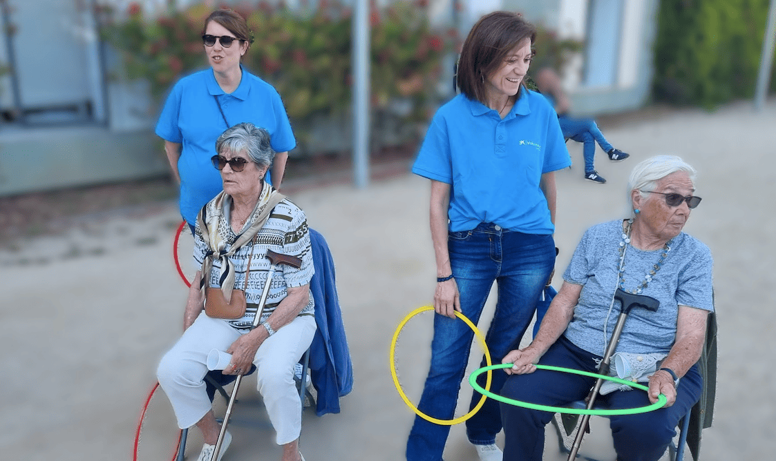 Des del primer moment es respirava il·lusió i ganes de gaudir. Acompanyats pel bon temps i un entorn agradable, comencem la jornada amb una suau sessió de gimnàstica dirigida per la fisioterapeuta del centre, adaptada a les capacitats de cada persona. Va ser una manera fantàstica d’activar el cos, compartir somriures i trencar el gel entre voluntaris i residents.